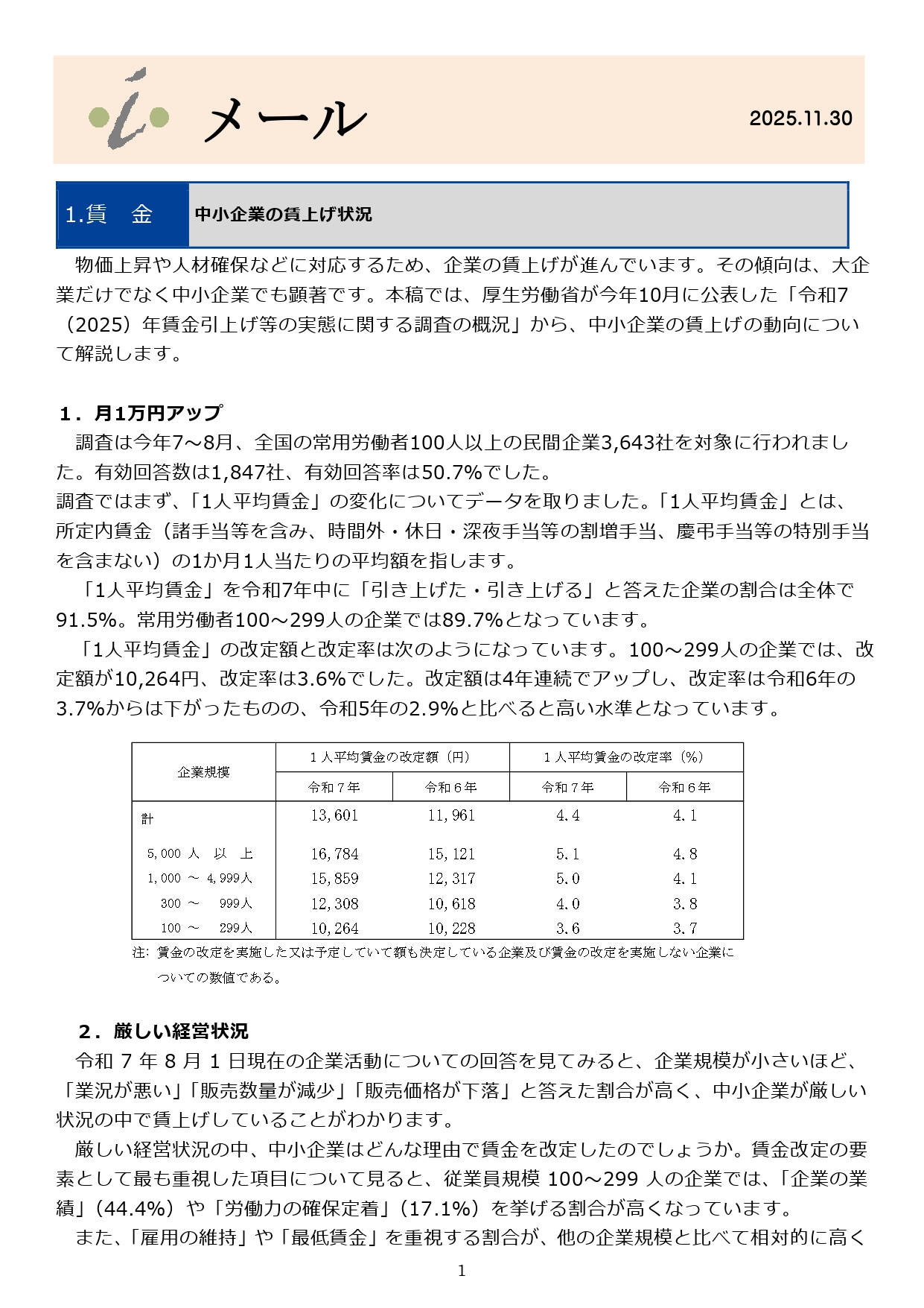 11/30 中小企業の賃上げ状況