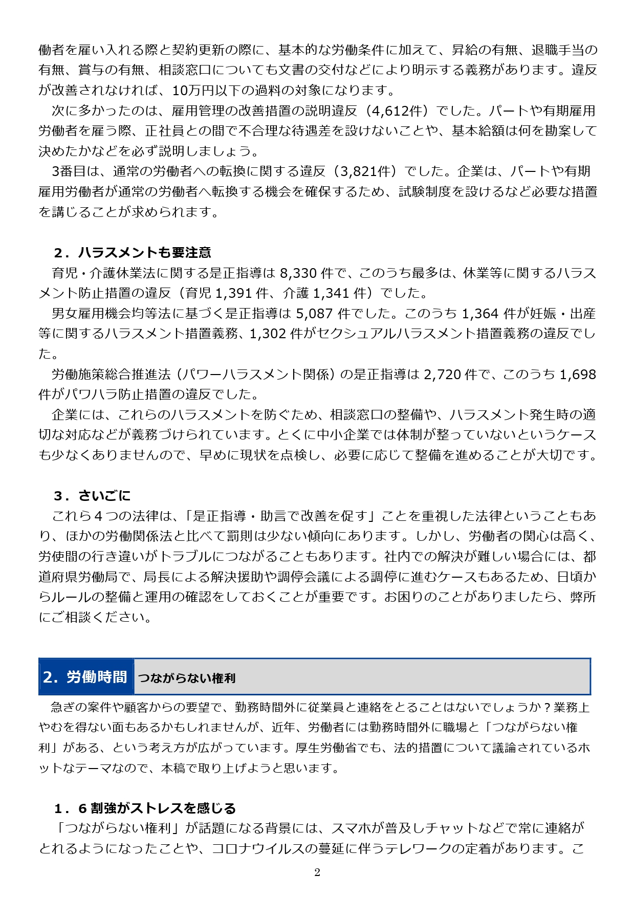 12/31 雇用環境・均等部(室)の是正指導